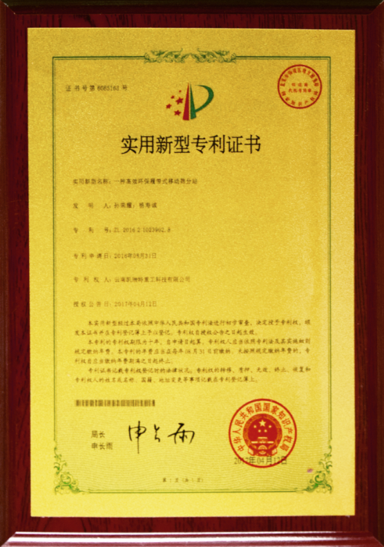 專利證書【高效環(huán)保履帶式移動(dòng)篩分站】