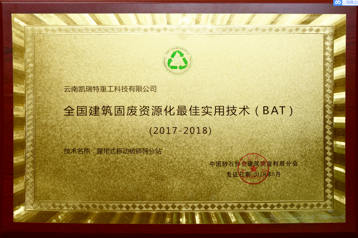 全國(guó)建筑固廢資源化最佳實(shí)用技術(shù)證書(shū)(BAT)