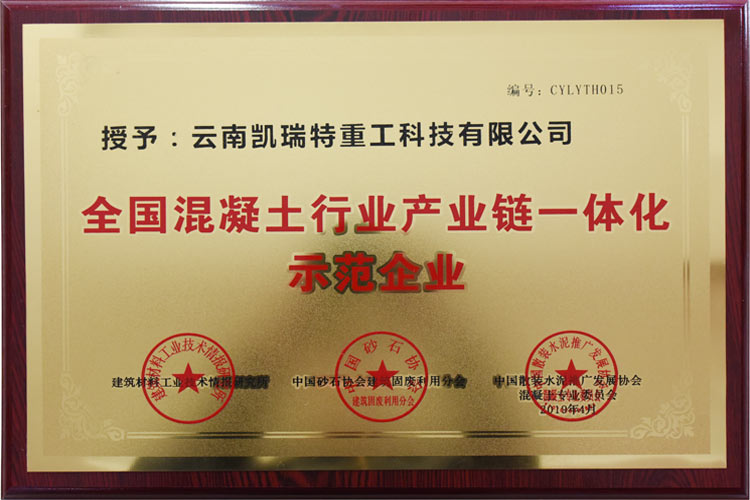 全國混泥土行業(yè)產(chǎn)業(yè)鏈一體化示范企業(yè)