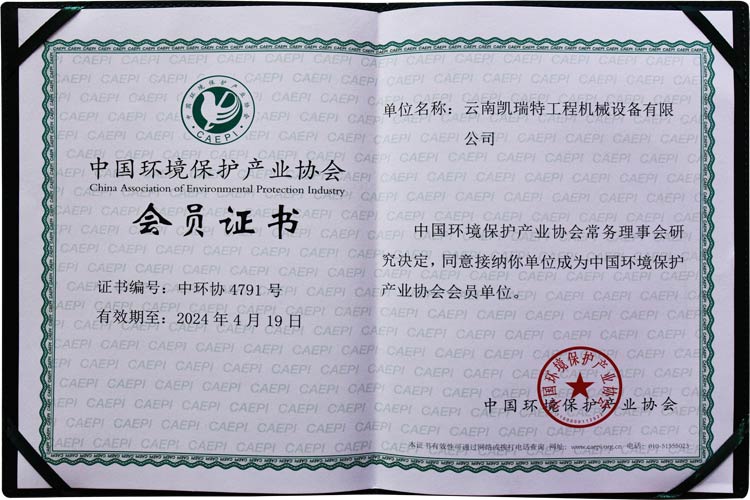 中國環(huán)境保護(hù)產(chǎn)業(yè)協(xié)會會員證書