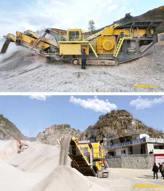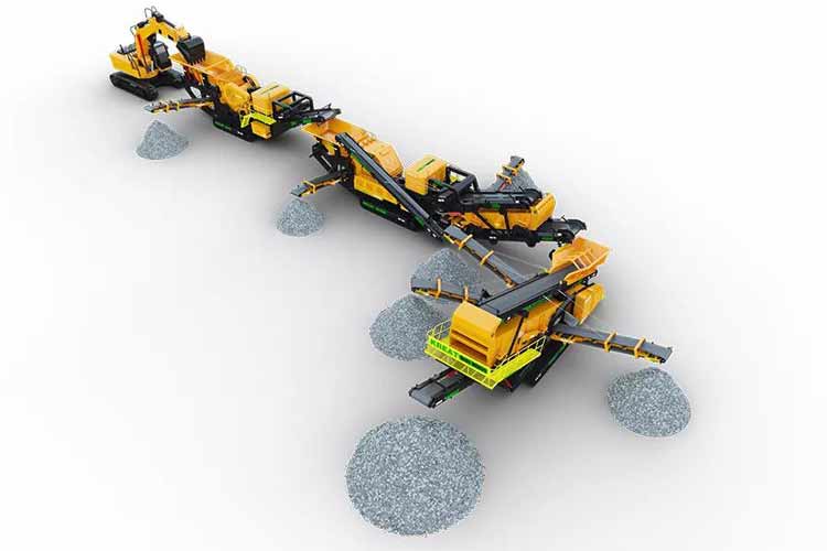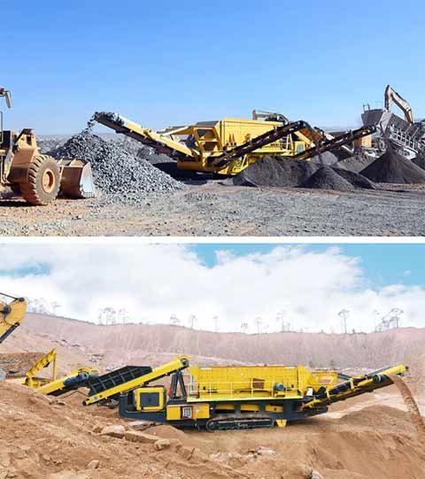 履帶移動顎式破碎站+履帶移動圓錐式破碎站+履帶移動水平篩分站