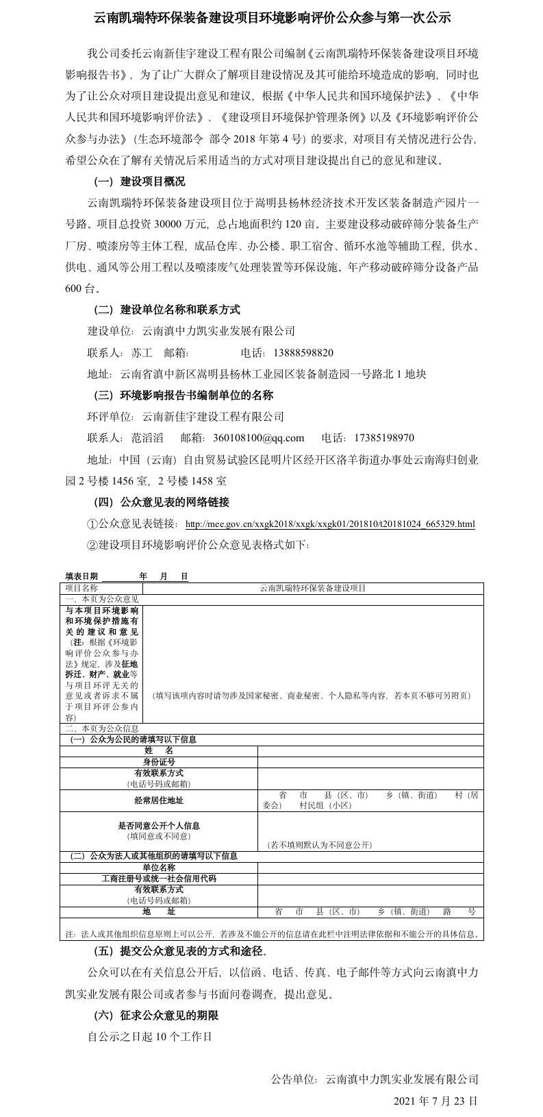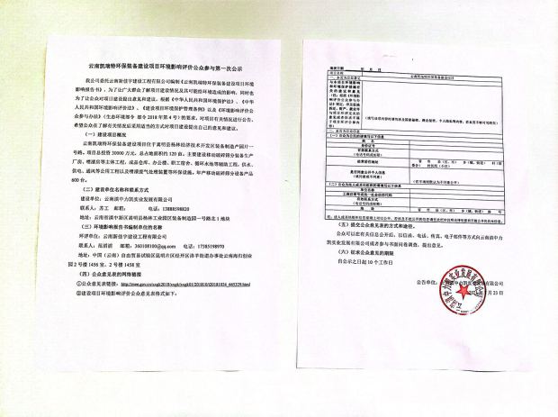 云南凱瑞特環(huán)保裝備建設(shè)項(xiàng)目環(huán)境影響評價(jià)公眾參與第一次公示